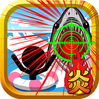 サメが迫ってくるラインの【FIRE】ボタンを押して大砲を撃とう!